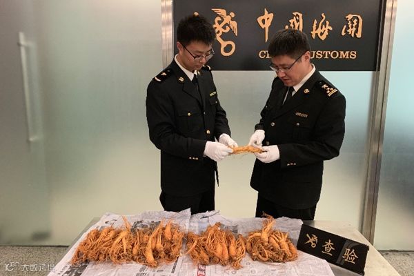 1月7日,沈阳海关关员在沈阳桃仙国际机场查获一批由韩国籍旅客违规携带进境的鲜人参,总重5.12千克。