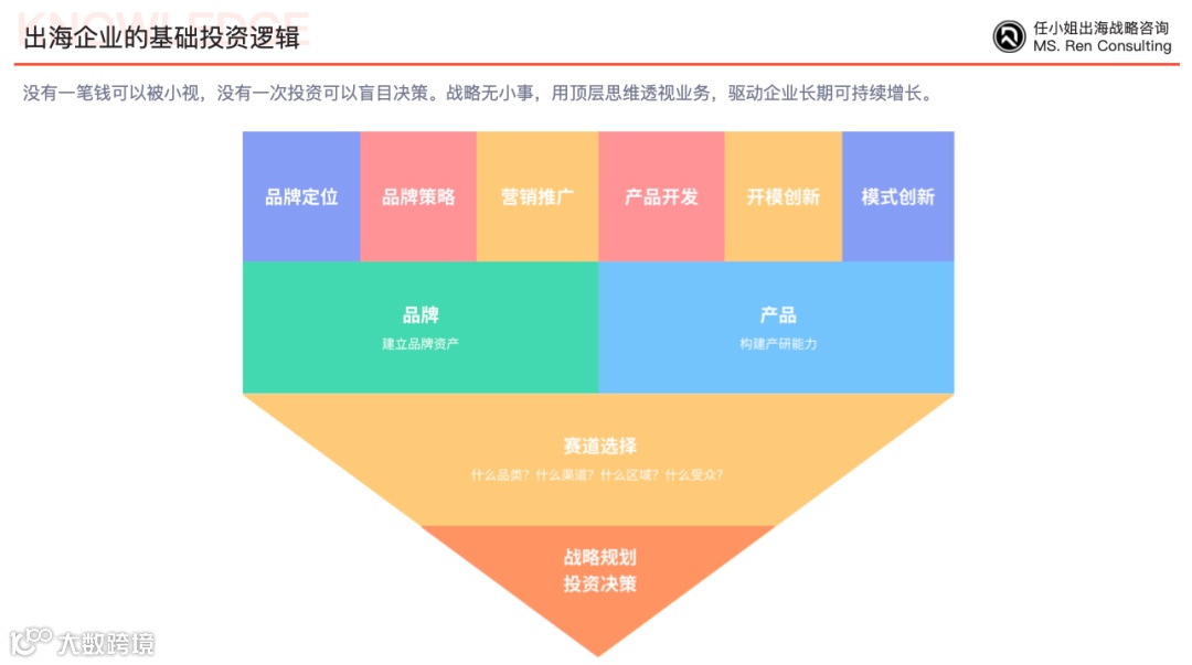基于十余年专注全球化经历以及大数据化分析能力,任朝茜认为,无论是目标市场的地理位置遥远,还是固守以卖货逻辑为中心的生意经,中国企业常常陷入用国内市场经验套用海外市场的误区,将国内成功的产品、运营模式全面复制到海外市场,造成品牌、产品与市场的不适配。