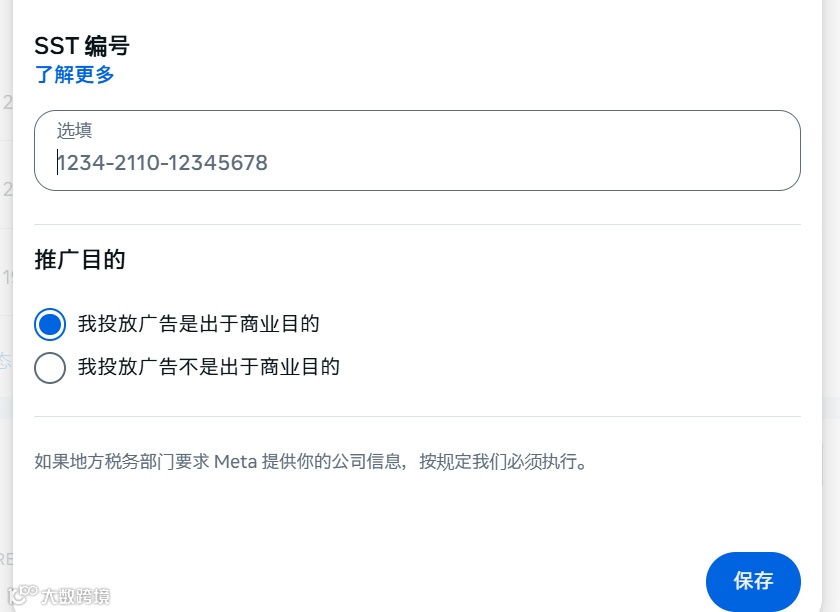 Facebook个人广告账号在正常广告费用之外,可能额外收取税费,税率因国家/地区而异,区间约为0–25%。多数国家在广告账户中正确填写合规税号(如VAT、TIN等)后可豁免该税费,因此准确提供有效税号至关重要。