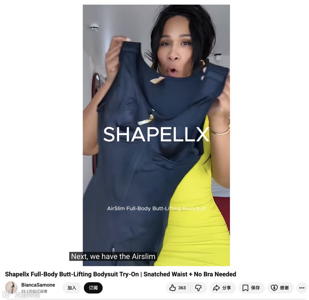 塑身衣品牌Shapellx与YouTube多平台创作者BiancaSamone的合作,体现了品牌与达人之间在价值观、受众画像与内容调性上的高度契合。