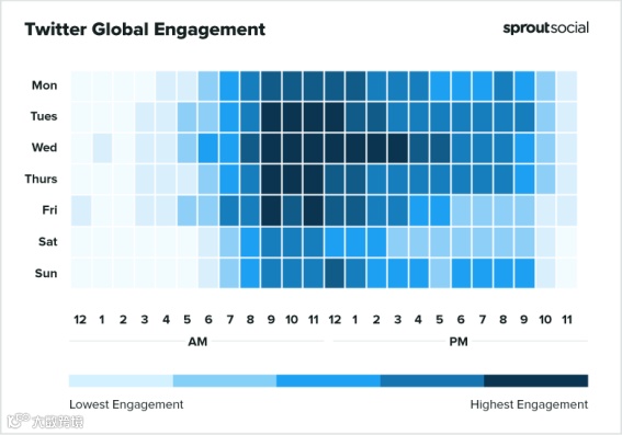 Tips:数据显示部分最佳发帖时间段为凌晨2点到凌晨4点的时间,考虑美国本土不同的时区,从发帖的时间上来说,建议可以在晚上时间发布贴文, 对比测试,增加互动。