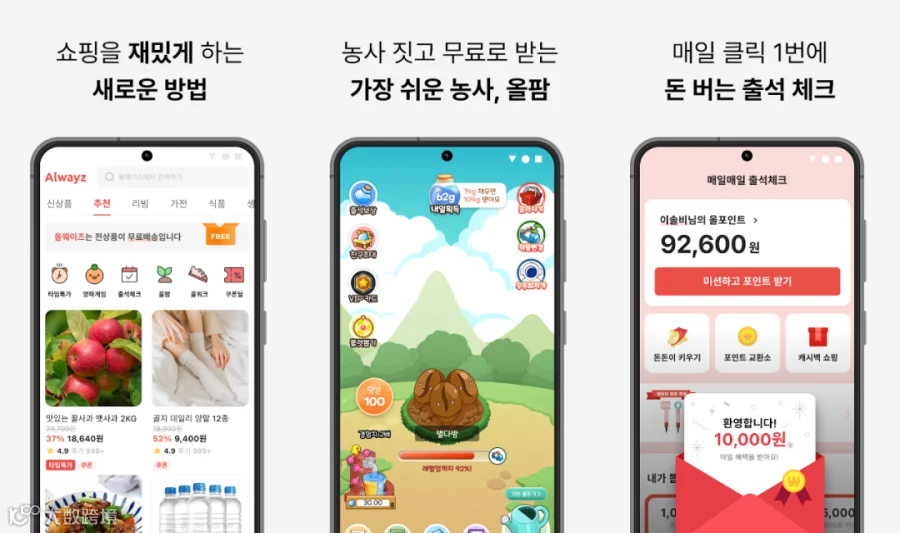 在此之前,Alwayz身上最大的标签是——总部位于首尔的电子商务初创公司Levit在2021年推出的网购软件,被称为“韩国版的拼多多”。Alwayz平台上有很多提升用户停留时长的设置,诸如小游戏、短视频等,主流人群是五六十岁的女性人群,她们会在空闲时打开Alwayz消耗时间。