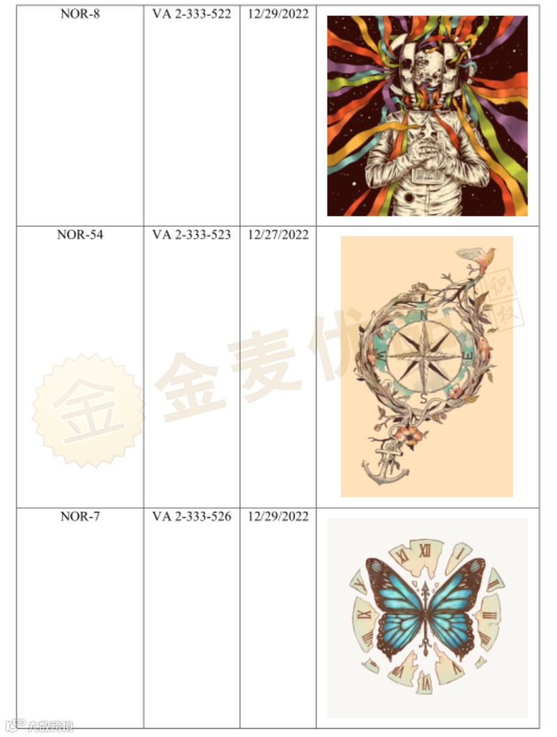 2024年6月24日,David律所代理Norman Duenas在伊利诺伊州北部法院发起版权维权,案件号:2024-cv-05274,该案件于7月10日签署了临时限制令(TRO),原告在7月17日提出延长TRO的申请。Duenas是一位专注于为服装、文具、配饰、家居装饰和必需品等各种产品创造独特的原创艺术品和插图的艺术家,他的作品让这些产品在市场上与众不同,具有极高的艺术价值和商业价值。他的作品以自然元素、时钟、头骨、宇航员等元素为特色,通过超现实的插图和诗歌探索与死亡、时间和空间、梦想和记忆相关的存在本质。Duenas的艺术风格和技巧多样,能够传达深刻的作品意义和情感。如果卖家有上架Norman Duenas的相关作品,需要立即排查下架,避免侵权!