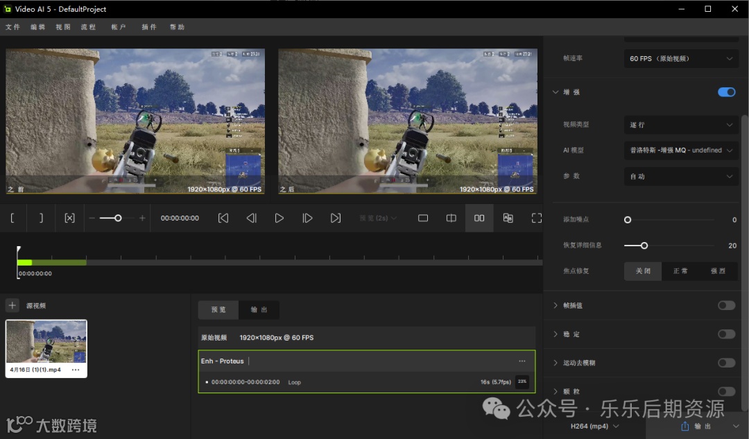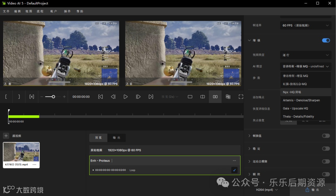 Chronos AI 模型 (v3):从 24fps 到 60fps 的流畅转换。还可以提升至 120fps 或更高。