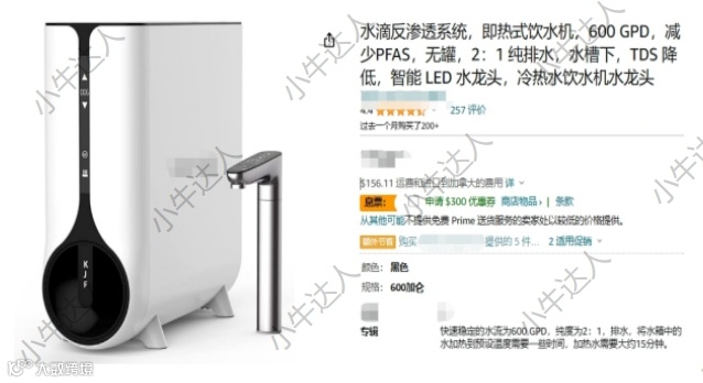 该产品于2022年4月21日在亚马逊平台上架(截至2024年7月11日)评分为4.4颗星,拥有257条来自买家的评论。在【热水饮水机】商品排行榜中排名第10名。