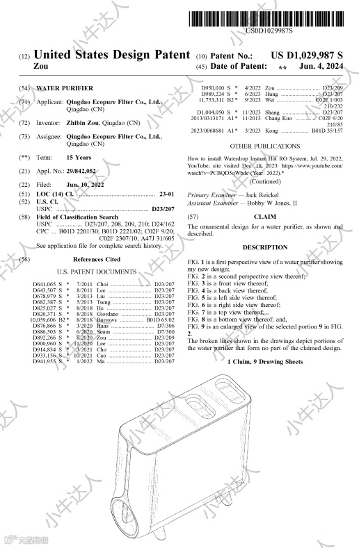 经查询,这款产品于2022年6月10日在美国进行外观专利申请的提交,于2024年6月4日获得了公告。