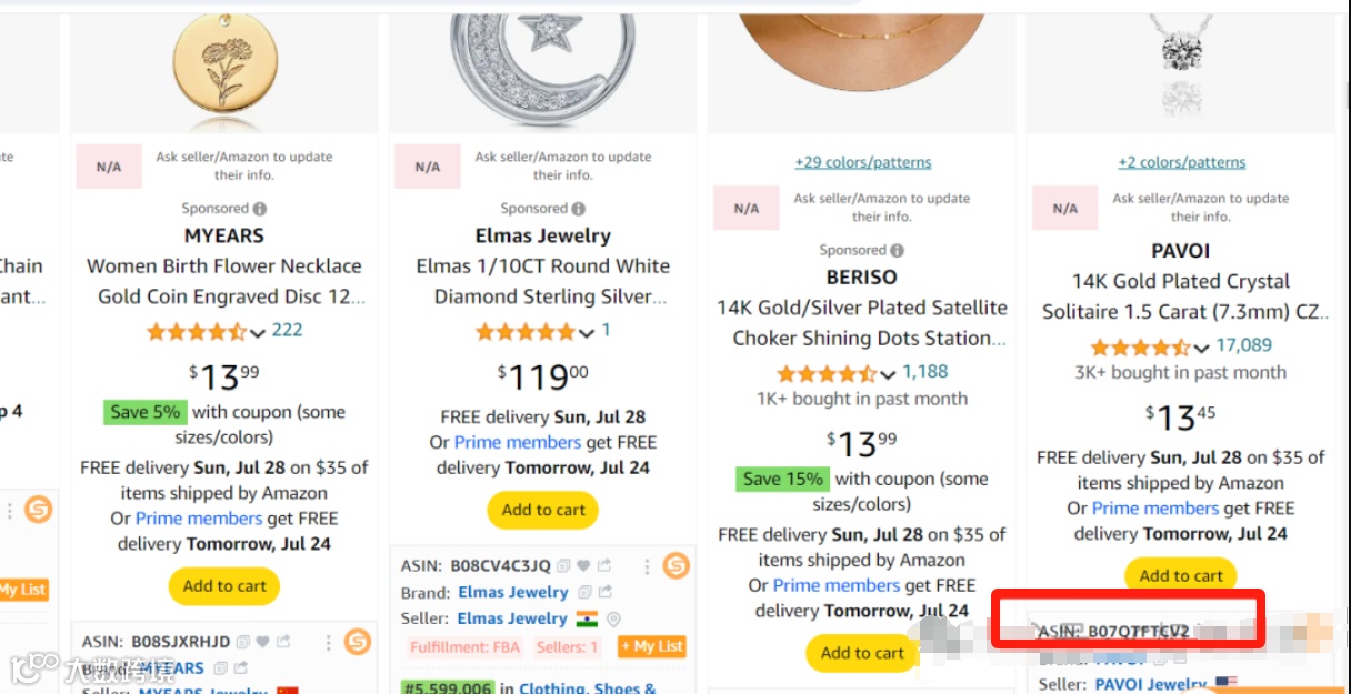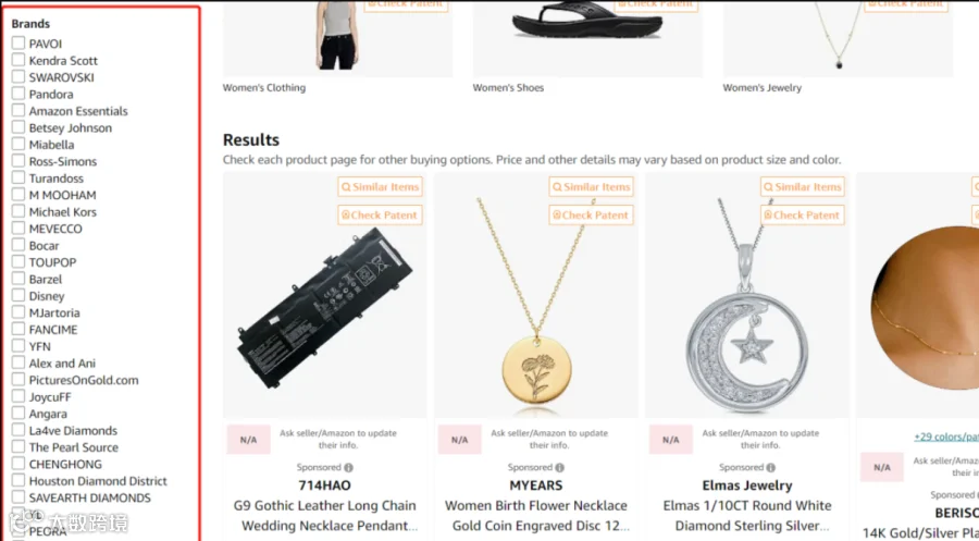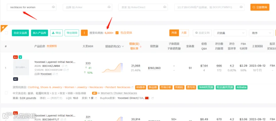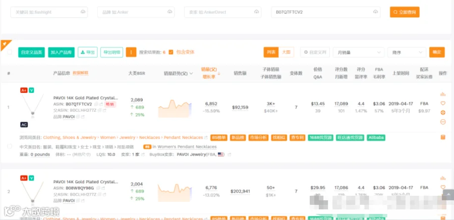 你是卖银饰类产品的,比如PAVOI这个品牌的这类项链,想要知道亚马逊这个品类有哪些竟对