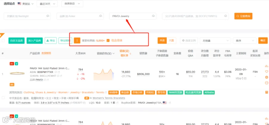 一次最多支持输入1000个ASIN。勾选“包含变体”,即可同时查询该ASIN其它变体的数据。