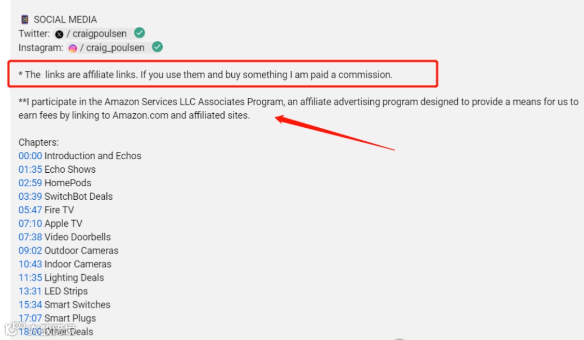 看视频下面这两段话,可以知道博主是亚马逊联盟红人: