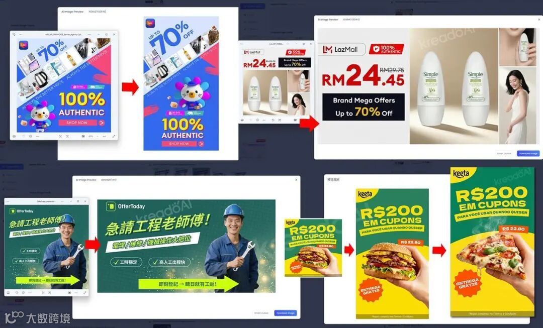在广告投放中,尺寸适配是最基础、也是最耗时的环节之一。KreadoAI推出的多尺寸生成功能,并非简单裁剪,而是基于AI对画面结构的理解,自动重构并优化每一尺寸的构图,确保每个版本都具备自然感与成片质量 [2] 。
