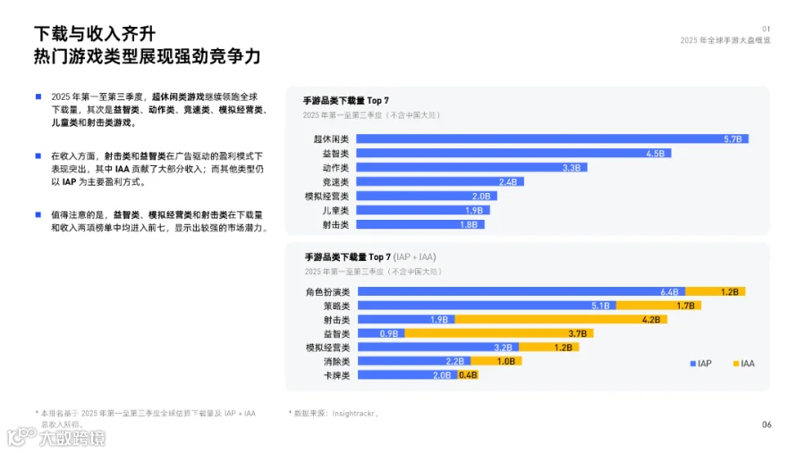 超休闲与益智类游戏仍是“吸量引擎”,在下载端保持高活跃度;策略类、硬核类游戏则在收入端展现出更强变现能力。