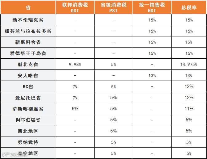 PST为各省自行征收的消费税,税率各不相同,具体由省政府负责收取和管理。魁北克省的QST以及马尼托巴省的RST也属于此类税种,但需单独申报。