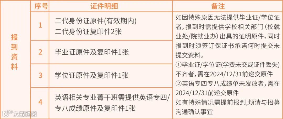 报到现场所需资料清单