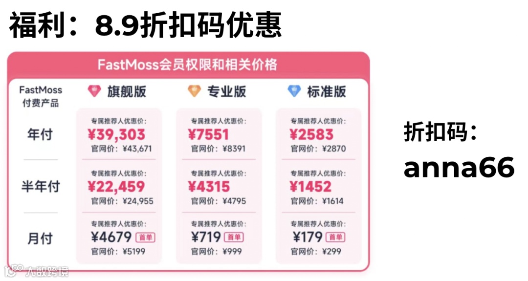 ▶ FastMoss会员&Anna折扣码