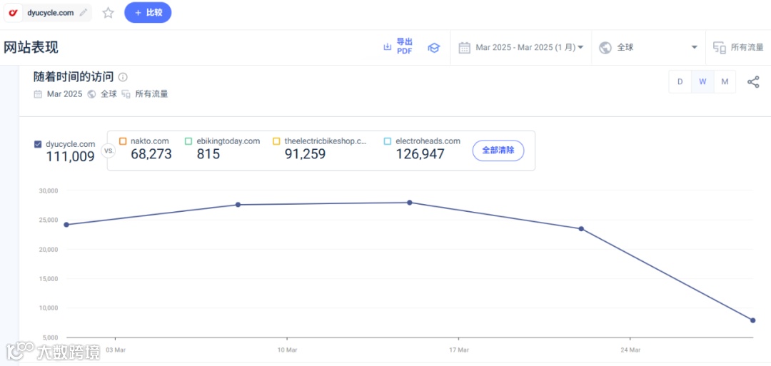 similarweb数据显示,2025年3月,DYU品牌独立量月访问量达11万次,其中,直接流量占据40.28%,自然流量占据19.75%。