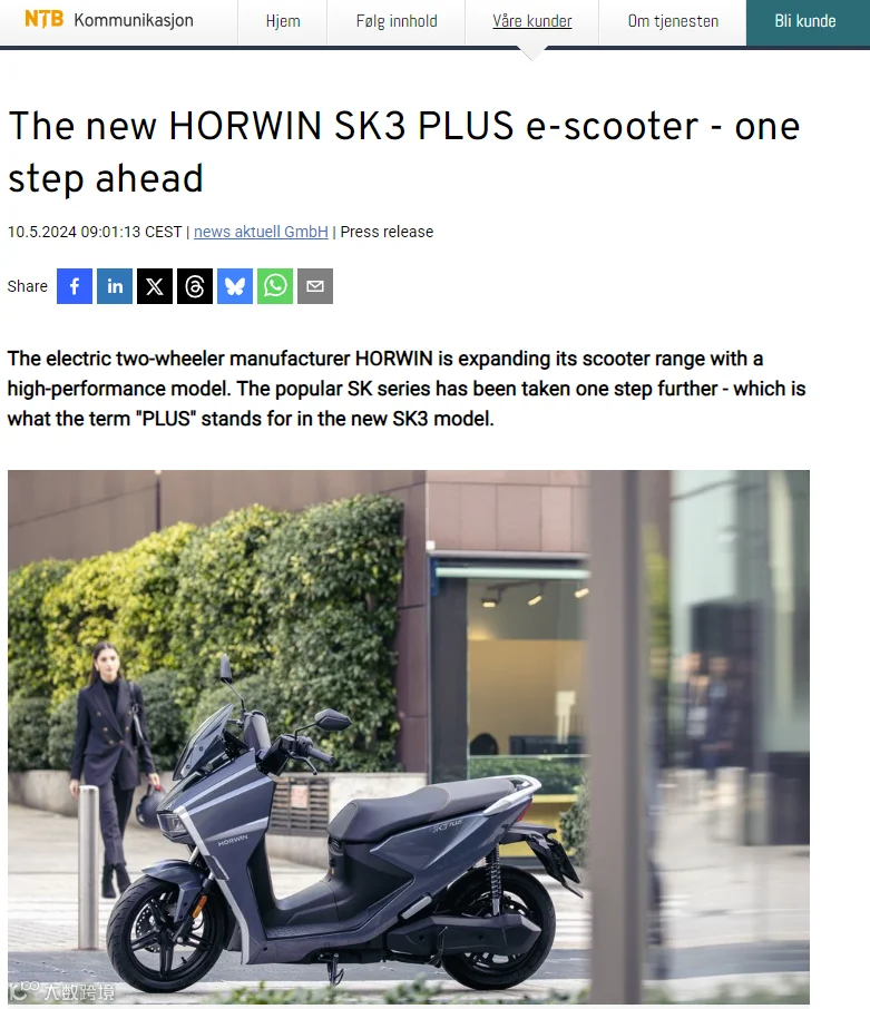 2024年10月投放在挪威的综合媒体NTB发布Horwin SK3 PLUS新品上市稿件,并宣告已在经销商处发售,成功赋能新品,实现品效爆发。