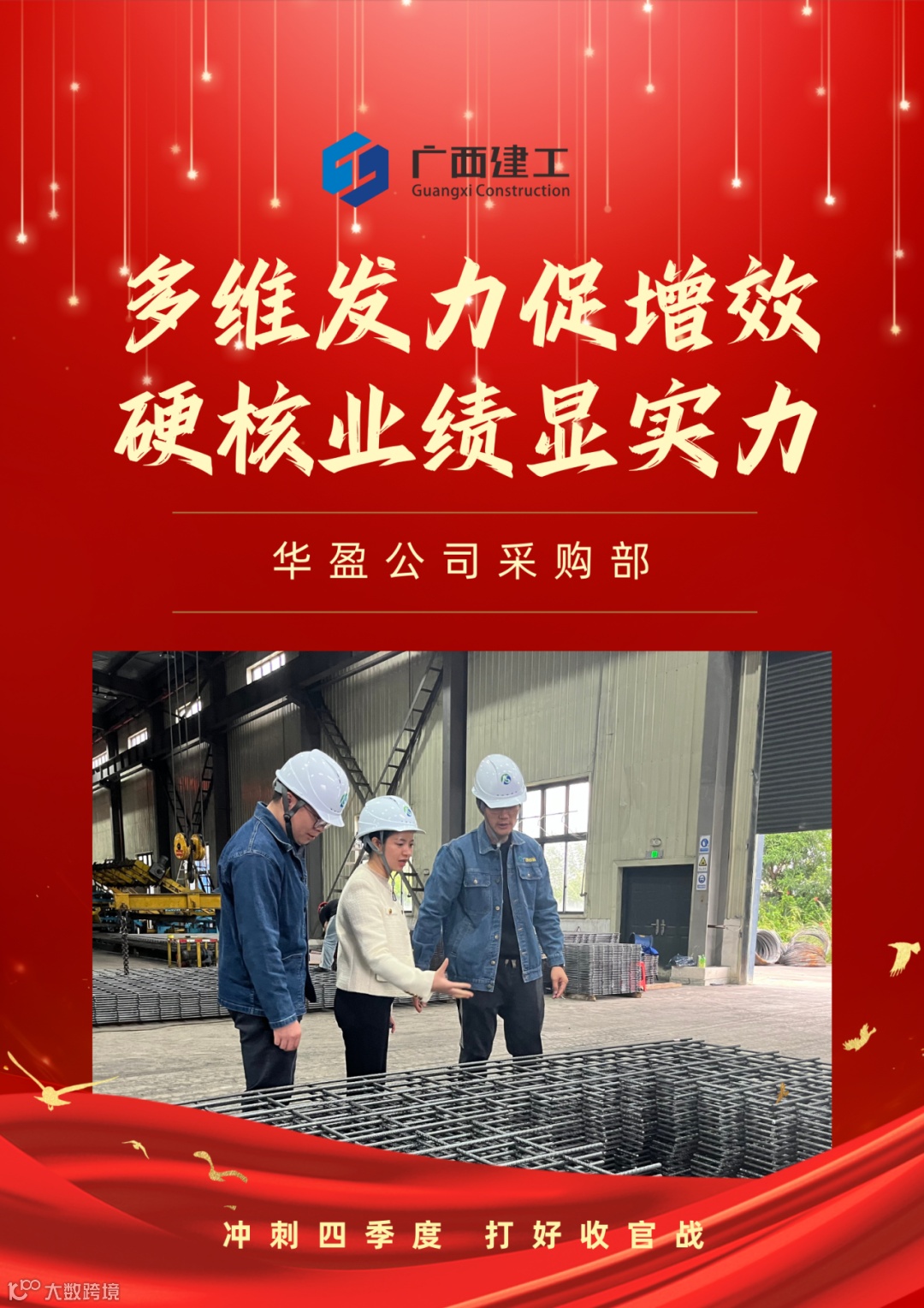 华盈公司采购部锚定“高质量发展”核心目标,秉持“以市场为导向、以客户为中心”理念,在主责主业攻坚、价值创造提升、新质业务开拓等领域多点突破,四季度钢材销售额完成季度指标110.32%;全年钢材销售额完成年度指标的124%,以硬核业绩彰显主业支撑力。