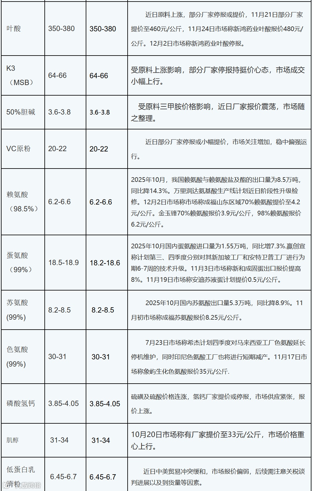 2025年12月4日添加剂市场动态