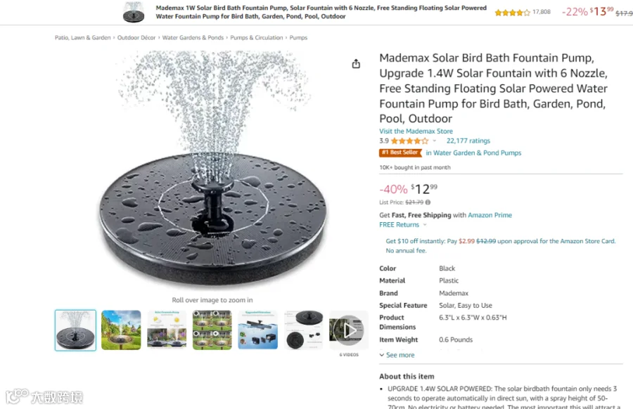 还有什么比待在自己家摆弄庭院更让人舒心的呢?户外装饰近年来成了市场大热门,优沃思发现在这个类目下,销量第一的竟然是喷泉泵。售价不到13美元,月销更是达到了10000+。