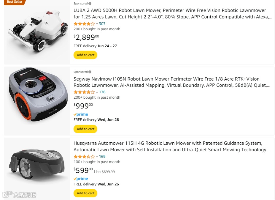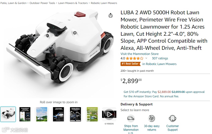 图中像扫地机器人造型的产品是LUBA2,尽管客单价高达2899,依然展现出不菲的市场潜力,月销200+,在自动割草机类目中销量第一。