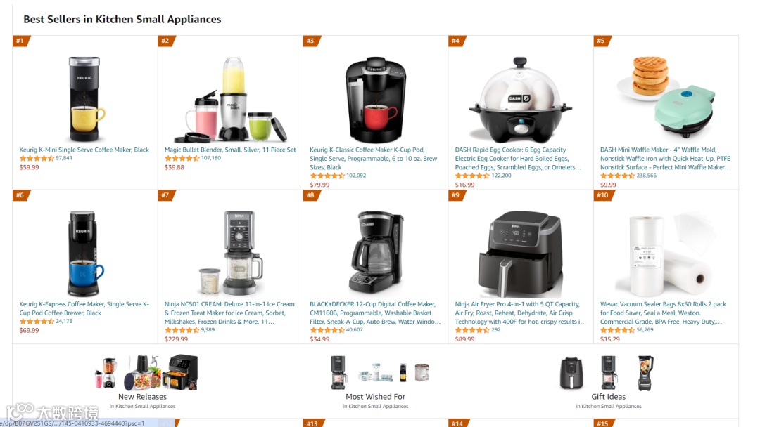 销量第一的咖啡机也是四款咖啡机中售价最低的,小家电的另一个优点则是更新换代速度快,在美国消费观念中认为不必在小家电中投入过多资金,所以售价低廉的小家电销量增长最快。