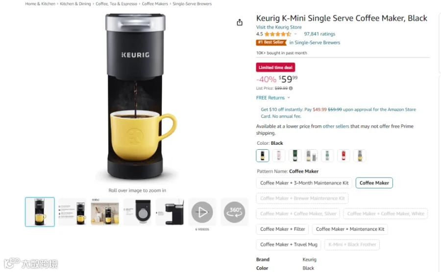 厨房小家电类目中,销量排名第一的是单杯咖啡机,60美元的售价,月销1万+,好评率达76%。
