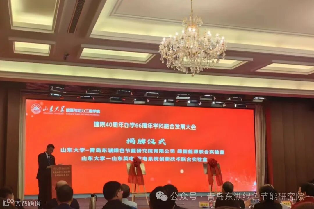 青岛东湖绿色节能研究院受邀参加山东大学能源与动力工程学院建院40周年庆典,并参与山大-东湖绿能 绿智能源联合实验室的揭牌仪式。双方将依托此实验室在绿色智慧能源方向展开深入合作。