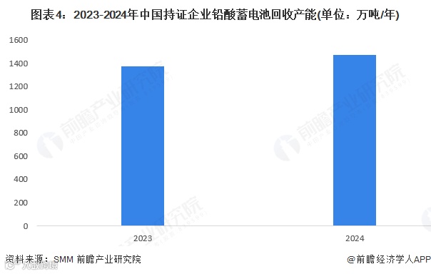 SMM数据显示,截至2024年末,中国71家持证处理废铅蓄电池的再生铅企业核准废铅酸电池和其它含铅废物处理能力为1471万吨,同比增长了7%。