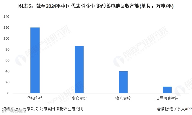 从行业代表性企业产能看,截至2024年,南都电源子公司华铂科技具备120万吨废旧铅酸电池处理能力,骆驼股份回收能力也达到86万吨/年,豫光金铅达到40万吨/年。
