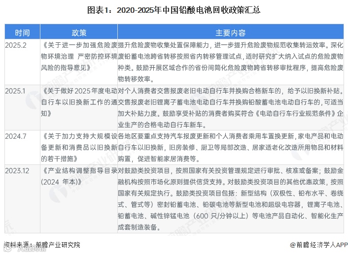 近年来,国家发布一系列政策,主要包括《关于进一步加强危险废物环境治理 严密防控环境风险的指导意见》《关于做好2025年度电动自行车以旧换新工作的通知》等,提升废旧铅酸电池回收利用能力。