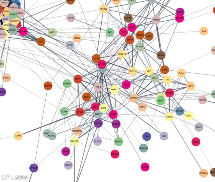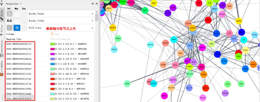 比如说,这个图是通过StringAPP插件生成的。每一个不同ID的节点都填充上了不同的颜色。