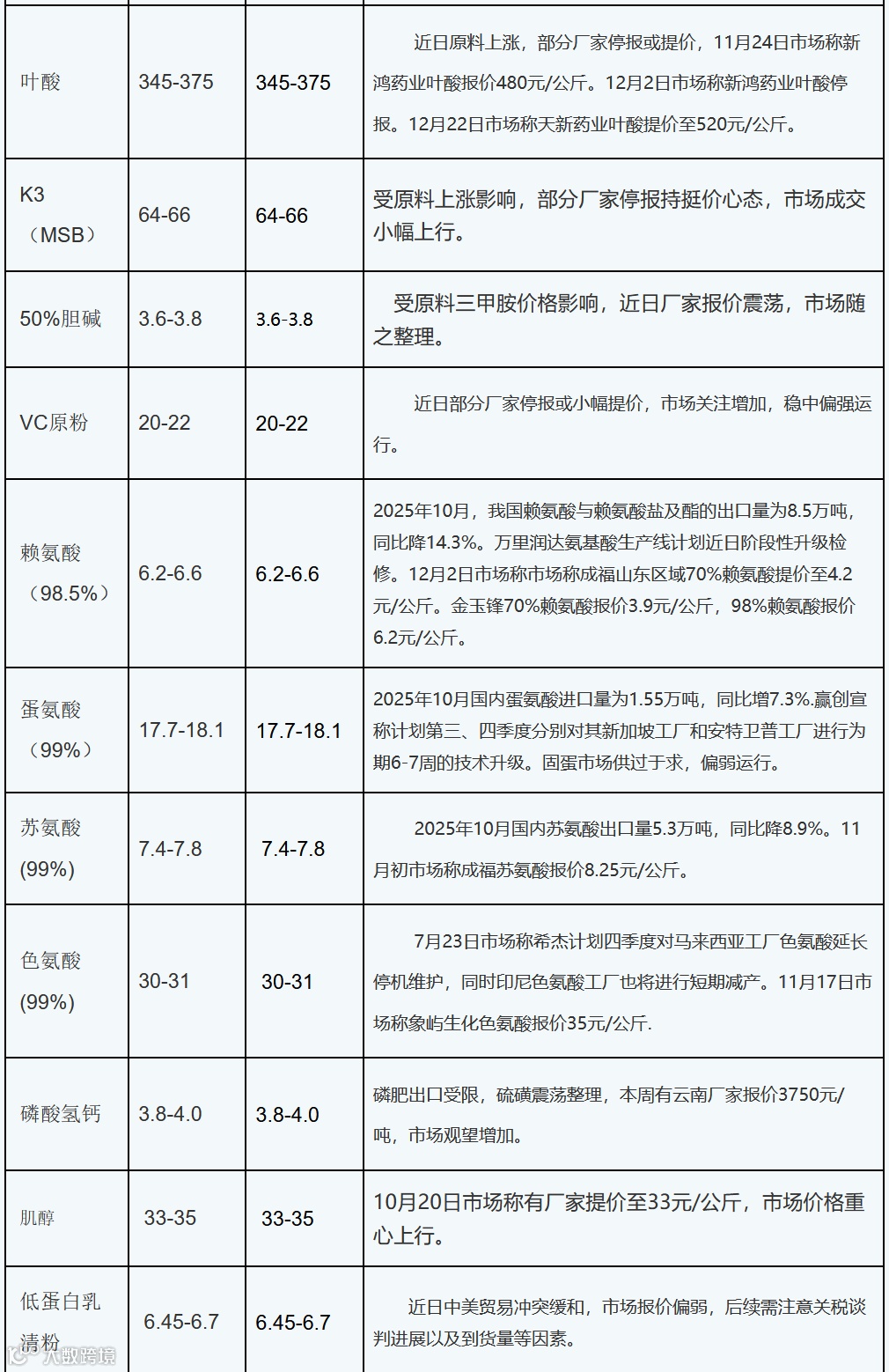 2025年12月22日添加剂:叶酸厂家报价上调