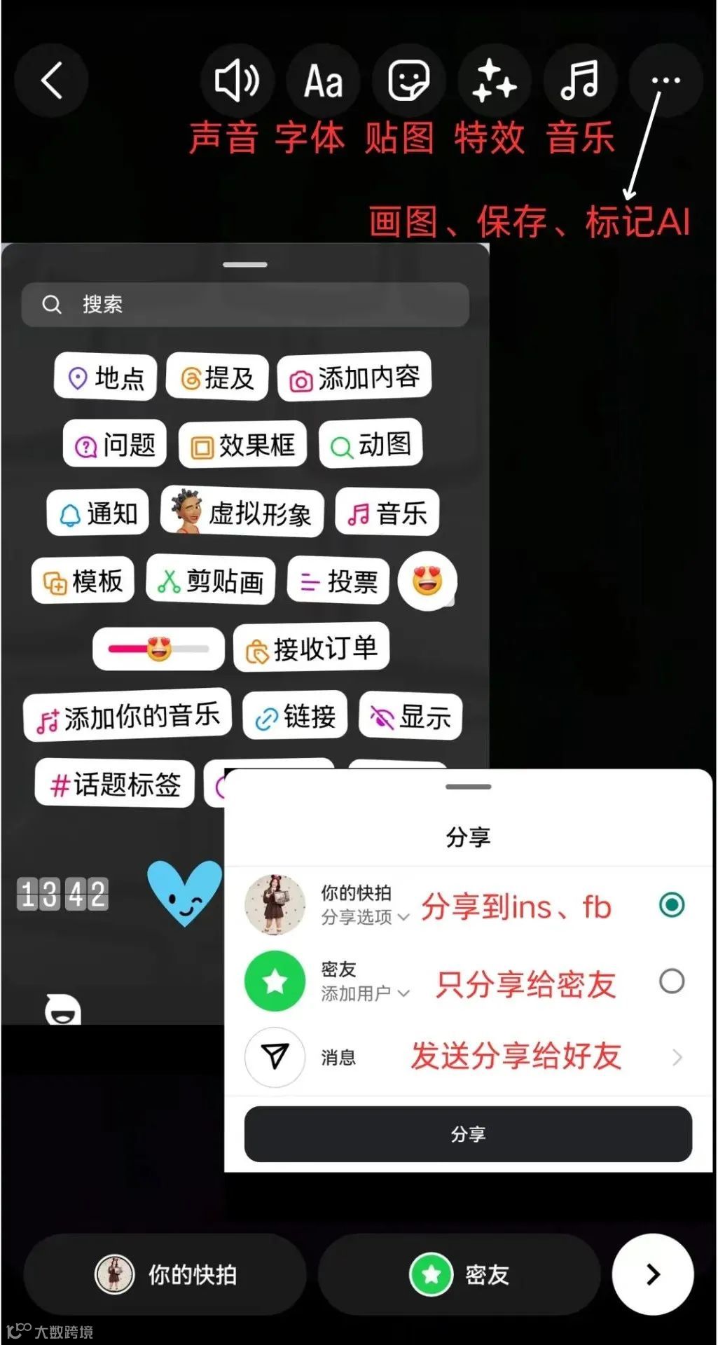点赞:双击照片或视频,或者点击帖子下方的 ,即可为其点“赞”。