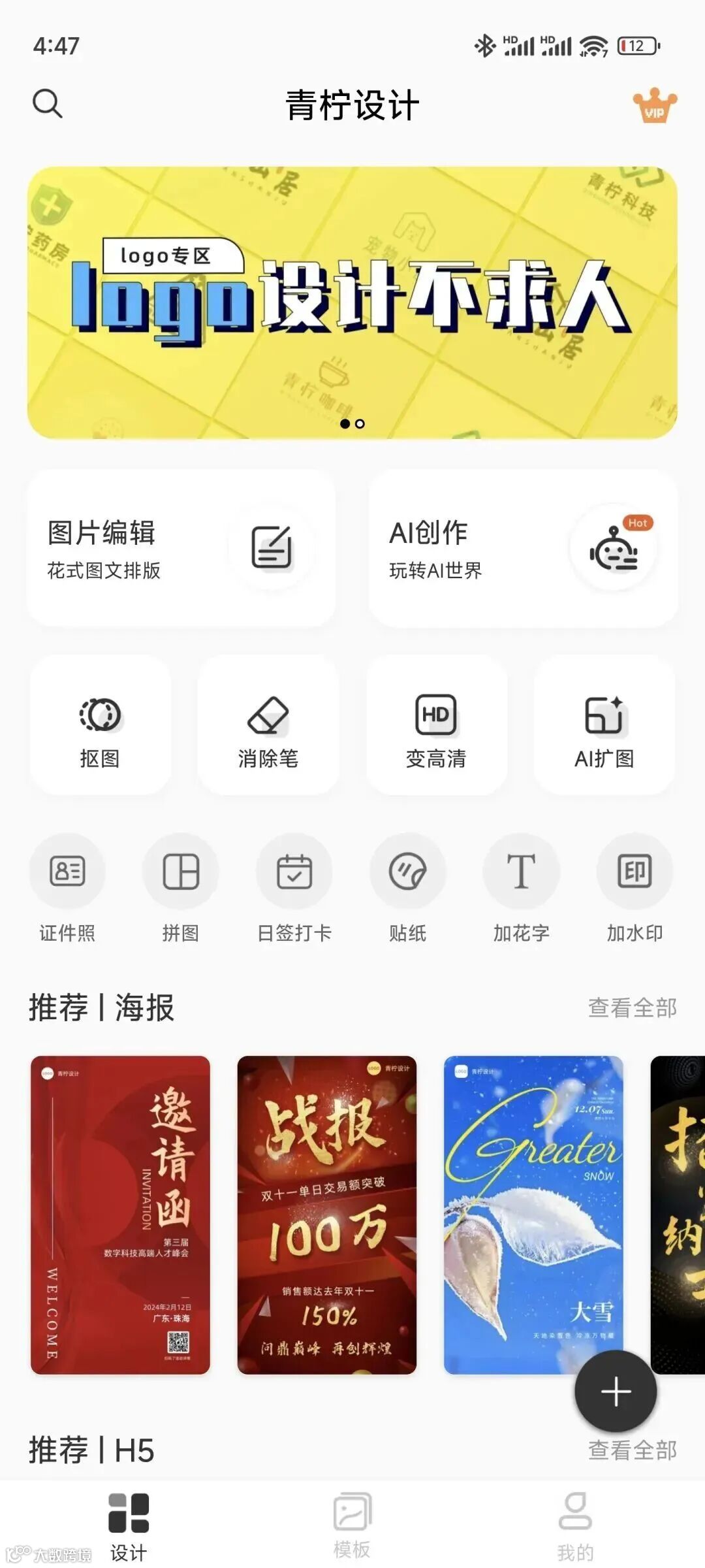 1W+优质图片、插画、80多种字体,只需要挑选模板,点击替换图片和文字即可完成设计。支持AI抠图、P图,多种花字特效 ,众多图文组合样式,支持图片的多种边框和滤镜效果处理。
