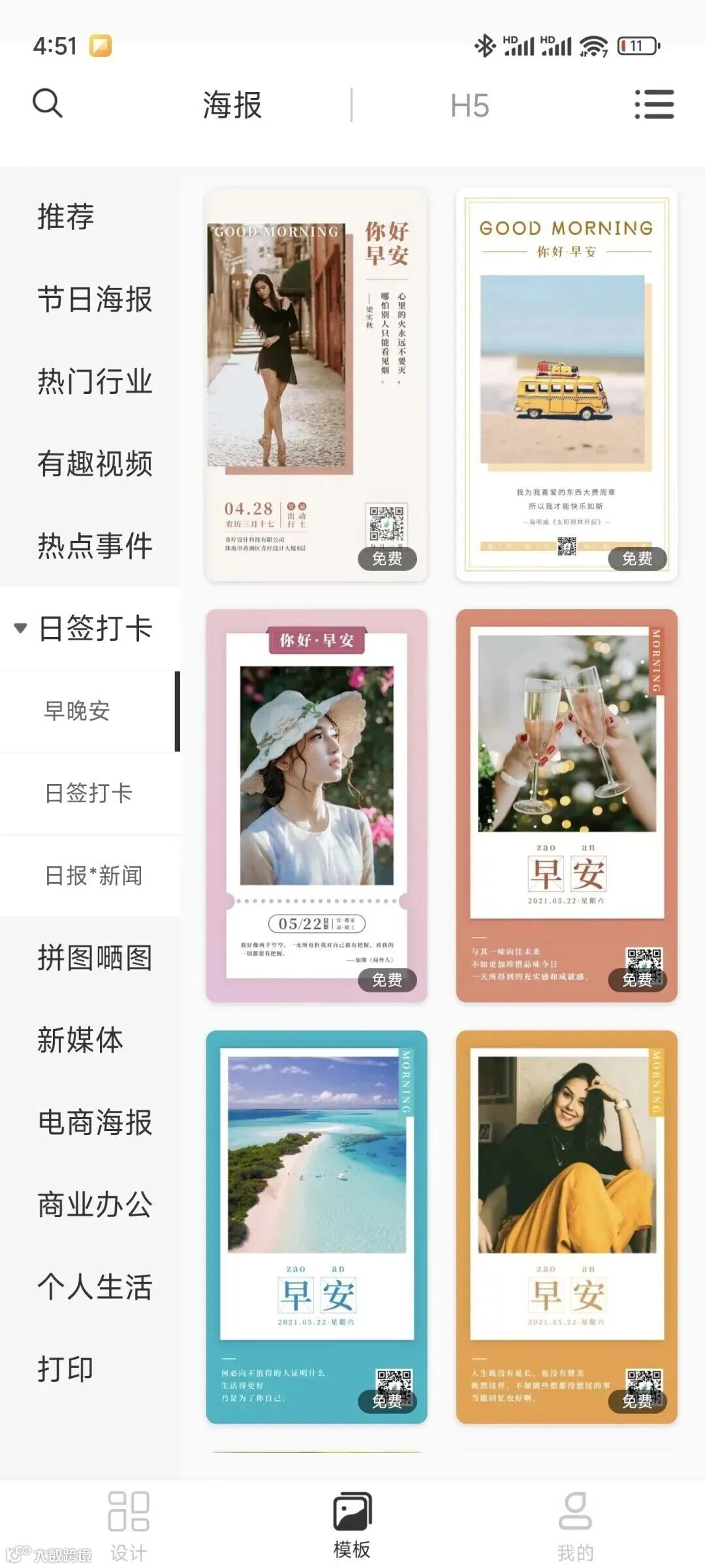 模板涵盖的类型非常多,想节日海报、日签打卡、电商海报、热门行业等,可以自行选择。