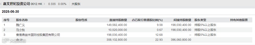 同时,鼎益丰控股集团国际有限公司在2025年7月3日起更名为嘉文世纪投资有限公司,目前仍在香港联交所上市,但一直处于停牌之中。在最新的股权数据中,隋广义个人仍持股9.58%。