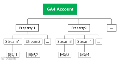 一个GA4账户下可以建多个Property,每个Property可对应多个数据流,一个个数据流对应一个网站(最多不超过50个数据流,应用数据流不超过30个)。