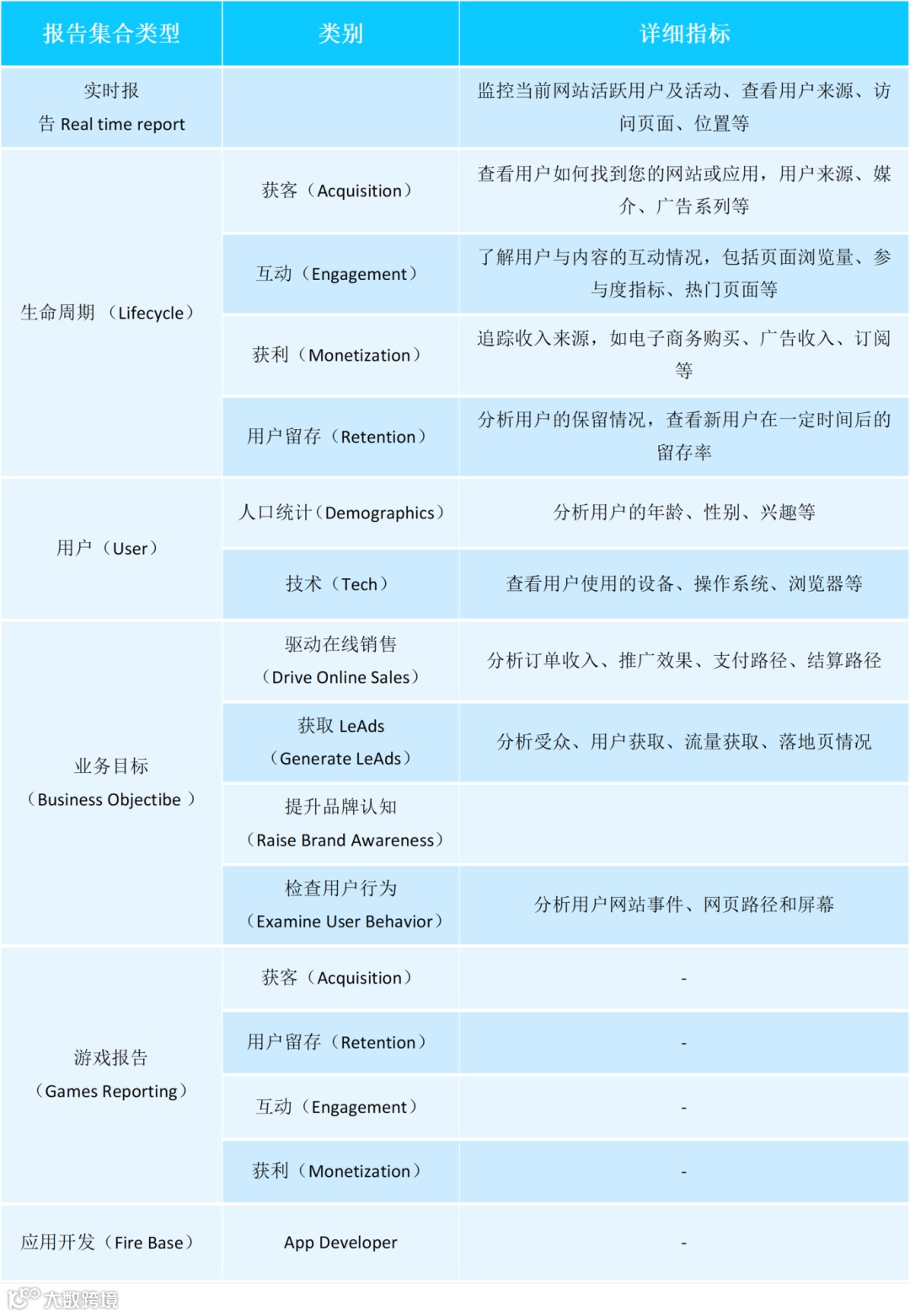 另外GA4主要也是数据分析平台,因此会有丰富的数分析报告。以下为GA4自带的基础分析报告,更多高阶分析报告,需要用户自行配置。