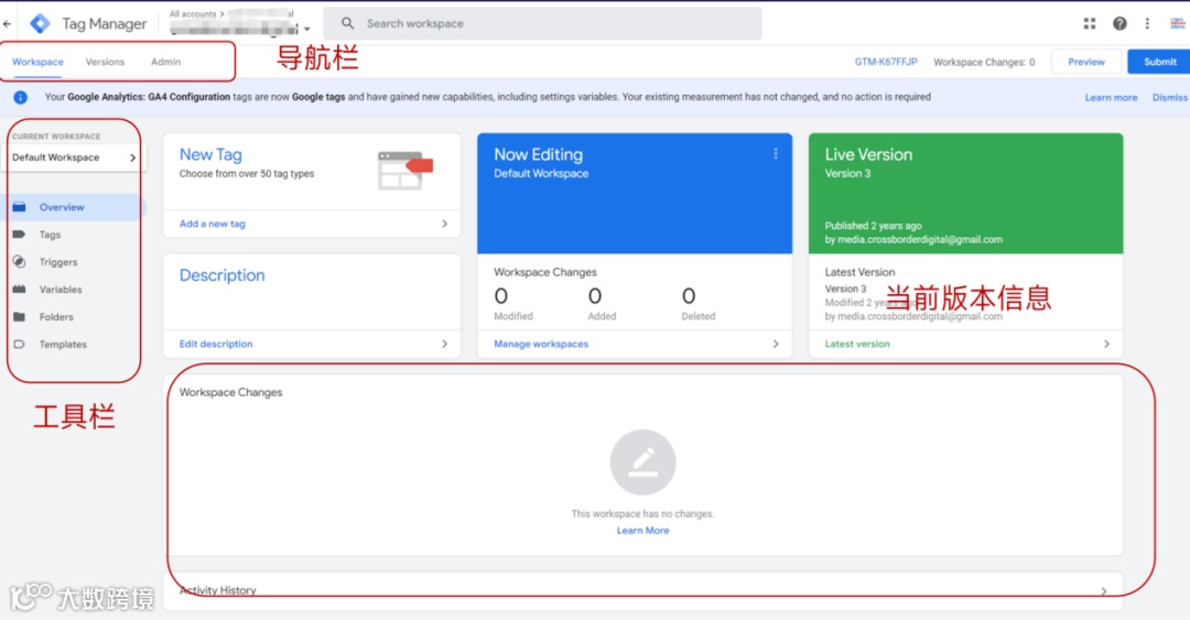 Google Tag Management(代码管理平台),安装GTM代码后,网站分析师与营销人员不用去或者更新网站的代码,只需通过GTM即可轻松利用各种追踪码程序以及第三方应用工具安装到网站中。