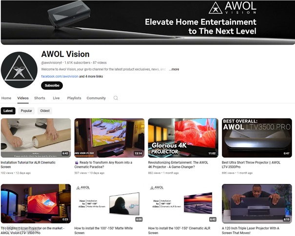 AWOL Vision(https://awolvision.com/)总部在佛罗里达州,在深圳也有办公室,主要在独立站和亚马逊上售卖高级家庭影院投影机,其投影机因其卓越的 4K 分辨率、出色的色彩质量以及在各种媒体格式中的卓越性能而备受赞誉,首次众筹便拿下百万美金成绩。