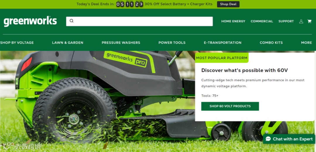 Greenworks(https://www.greenworkstools.com/)是新能源园林机械公司——格力博旗下的一个户外电动工具和园艺设备的品牌,网站主要销售户外电动工具和园艺设备。其产品包括电动割草机、树篱修剪器、链锯、吹叶机和其他用于庭院和花园维护的工具。