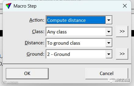 7、 使用视觉波段差(RGB 可用)或归一化植被指数(RGB + 红外可用)计算在步骤 6 中找到的硬表面点的距离。您可以通过按植被指数显示品脱云并使用极限设置来检查良好的极限值。
