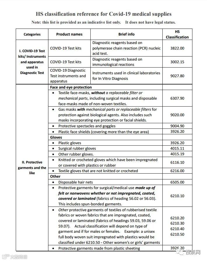 三、WCO最新防疫物资归类指南及HS Code查询