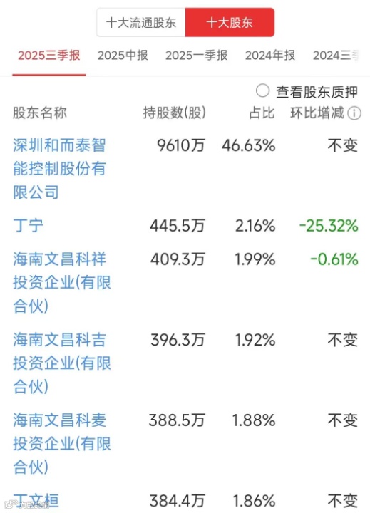铖昌科技控股股东为深圳和而泰智能控制股份有限公司,实际控制人为刘建伟。铖昌科技十大股东如下图: