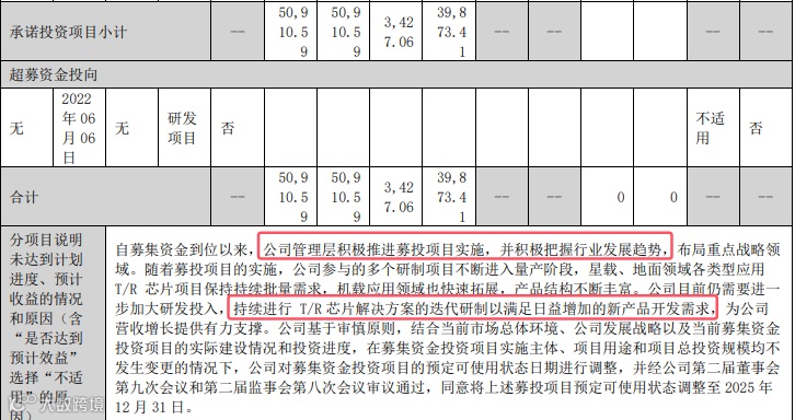 9.铖昌科技募集资金承诺项目情况【铖昌科技25年半年报】: