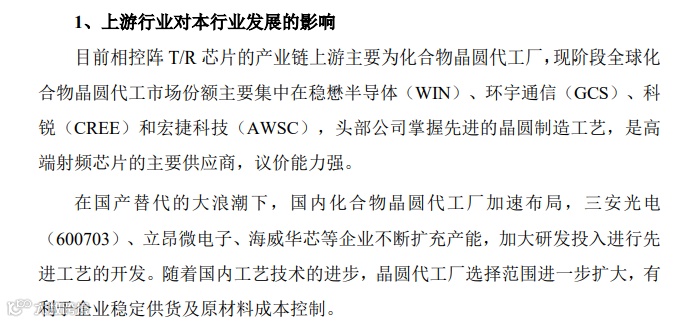 8.铖昌科技行业上下游情况及主要竞争对手【铖昌科技招股说明书】: