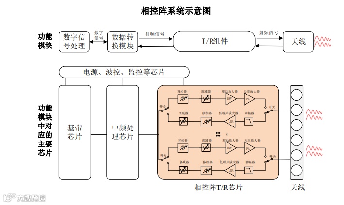铖昌科技成立于2010年11月,是一家以微波毫米波模拟相控阵T/R芯片(以下简称“相控阵T/R芯片”)研发、生产、销售和技术服务为主营业务的公司,是国内少数能够提供相控阵T/R芯片完整解决方案的企业之一。主要向市场提供基于GaN、GaAs和硅基工艺的系列化产品以及相关的技术解决方案。铖昌科技公司产品主要包含功率放大器芯片、低噪声放大器芯片、模拟波束赋形芯片及相控阵用无源器件等,频率可覆盖L波段至W波段。产品已应用于探测、遥感、通信、导航、电子对抗等领域,在星载、机载、舰载、车载和地面相控阵雷达中列装,亦可应用至卫星互联网、5G毫米波通信、安防雷达等场景。