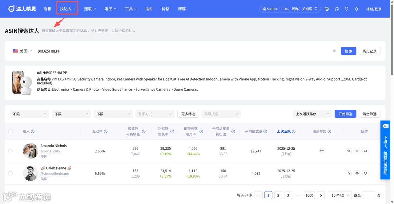 痛点二:如何高效找到推广过亚马逊产品的达人?