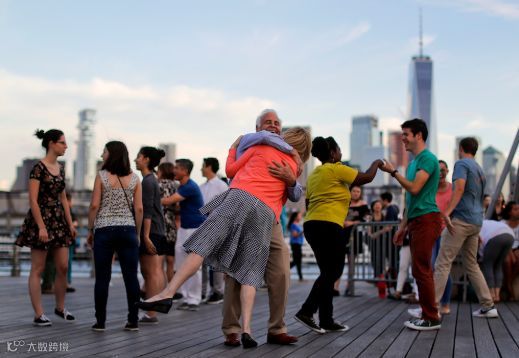 在哈德逊河边跳舞作乐的纽约居民