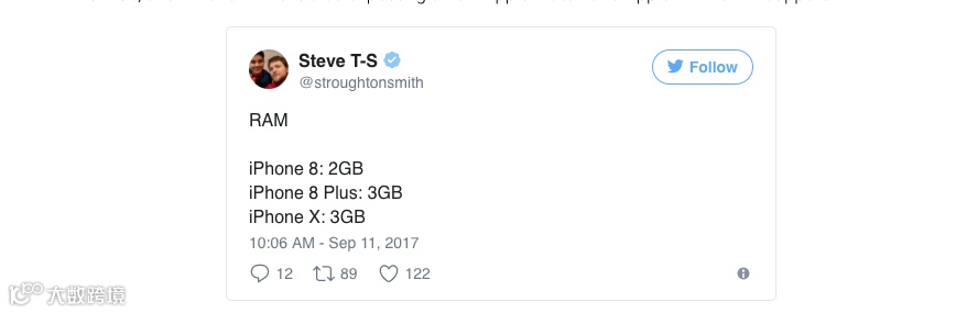 开发者 Steve Troughton Smith 找到了关于全新 iPhone 的配置消息。iPhone 8 将配备 2GB 运行内存,iPhone 8 Plus 以及全新的 OLED iPhone X 将配备 3GB 运行内存。目前的 iPhone 7 配备了 2GB 运行内存。